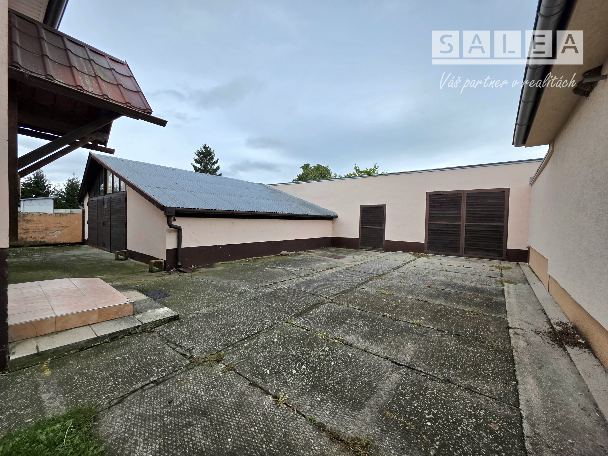 ✔ veľký pozemok (926 m²) s garážami, skladmi a hospodárskymi budovami