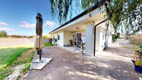 Garáž je pre jedno motorové vozidlo, brána aj garážové dvere sú na elektrický pohon. Okolo domu sú vybudované spevnené plochy, štrkové a betónové chodníky, oplotenie je bariérové s kovovou bránou a bránkou.