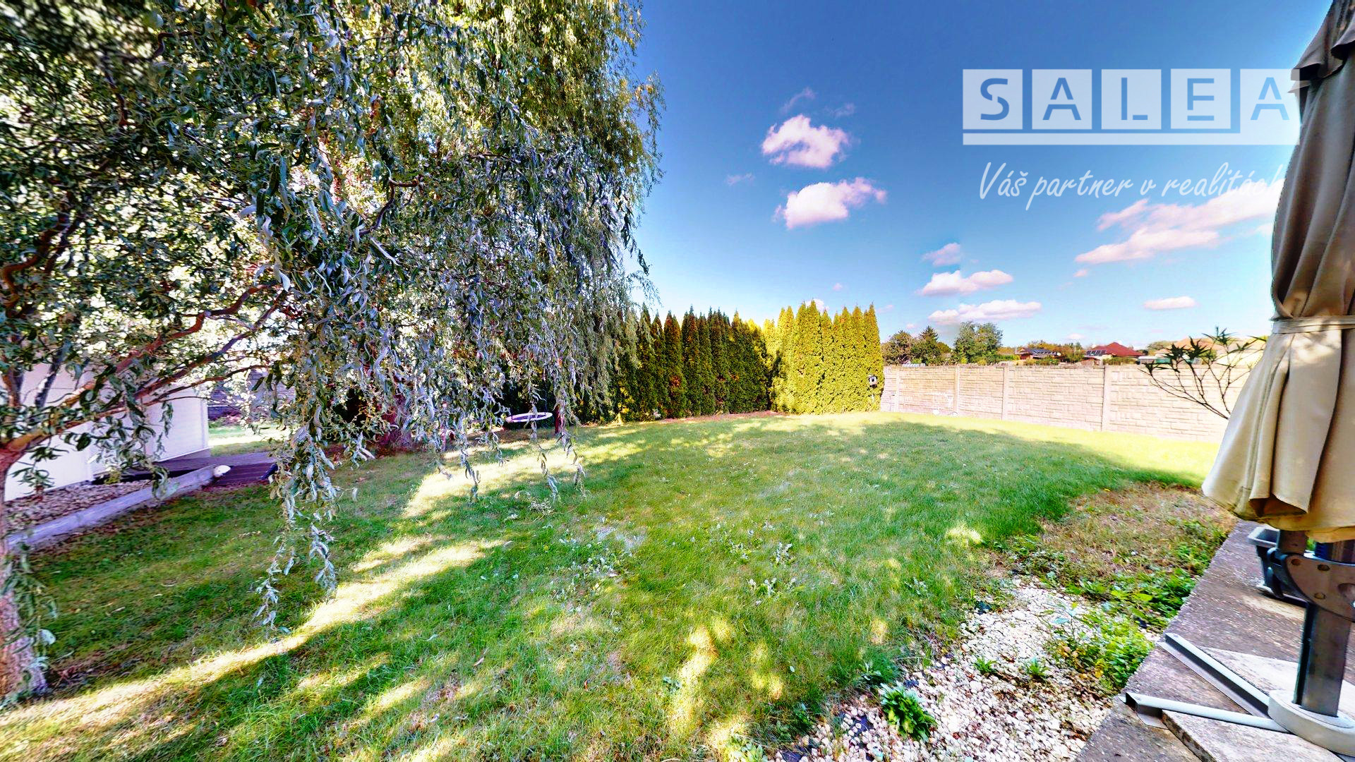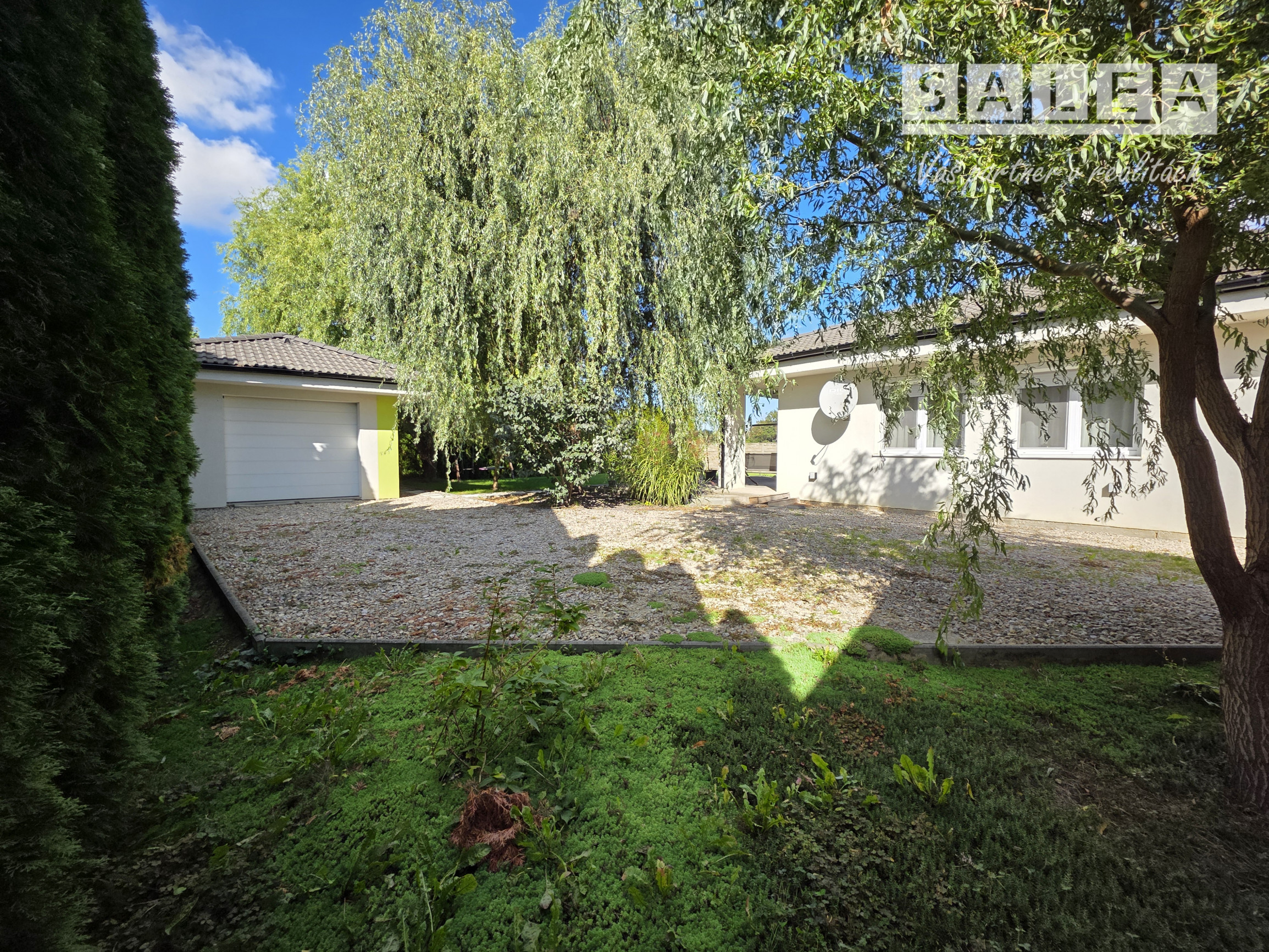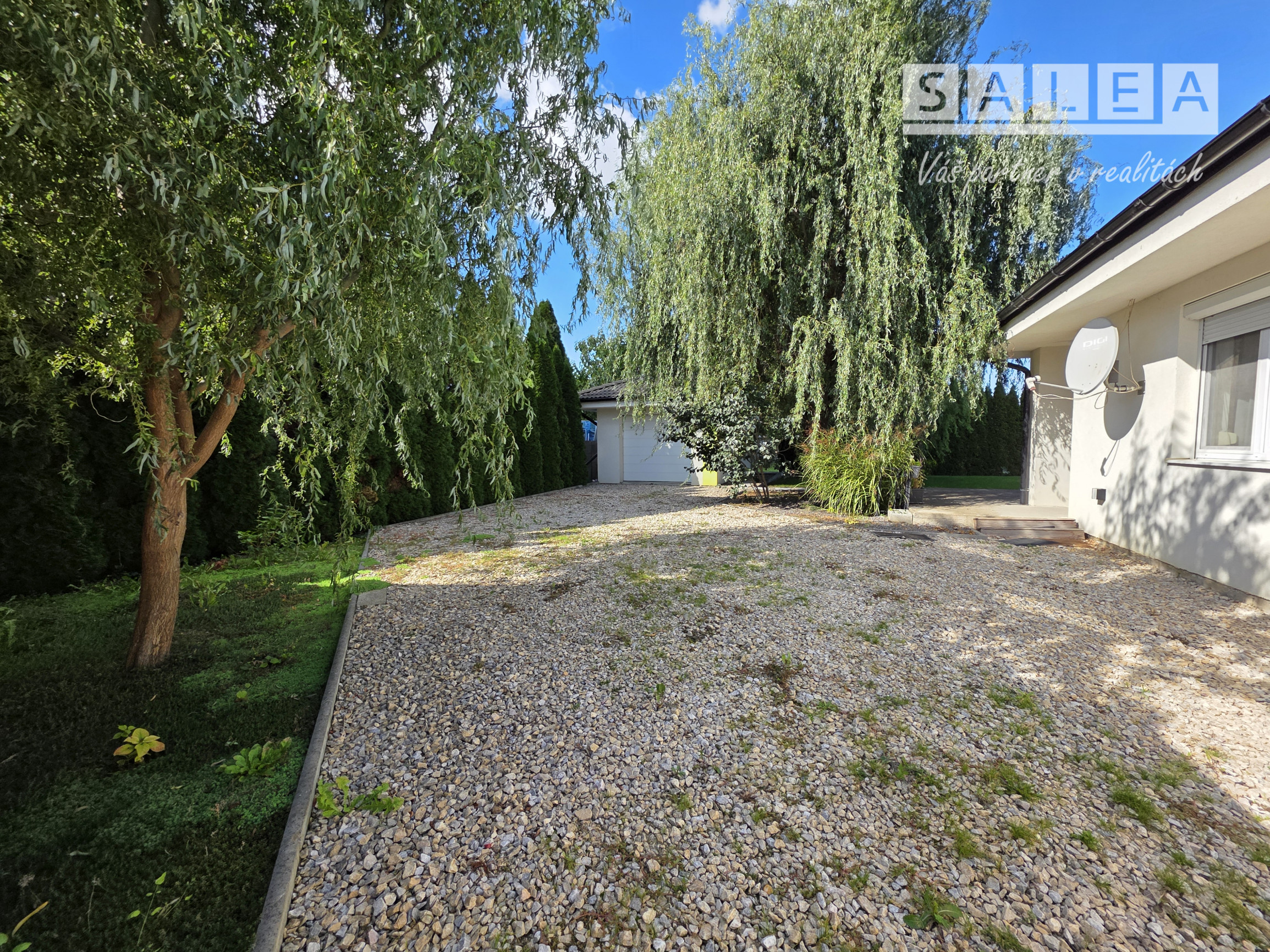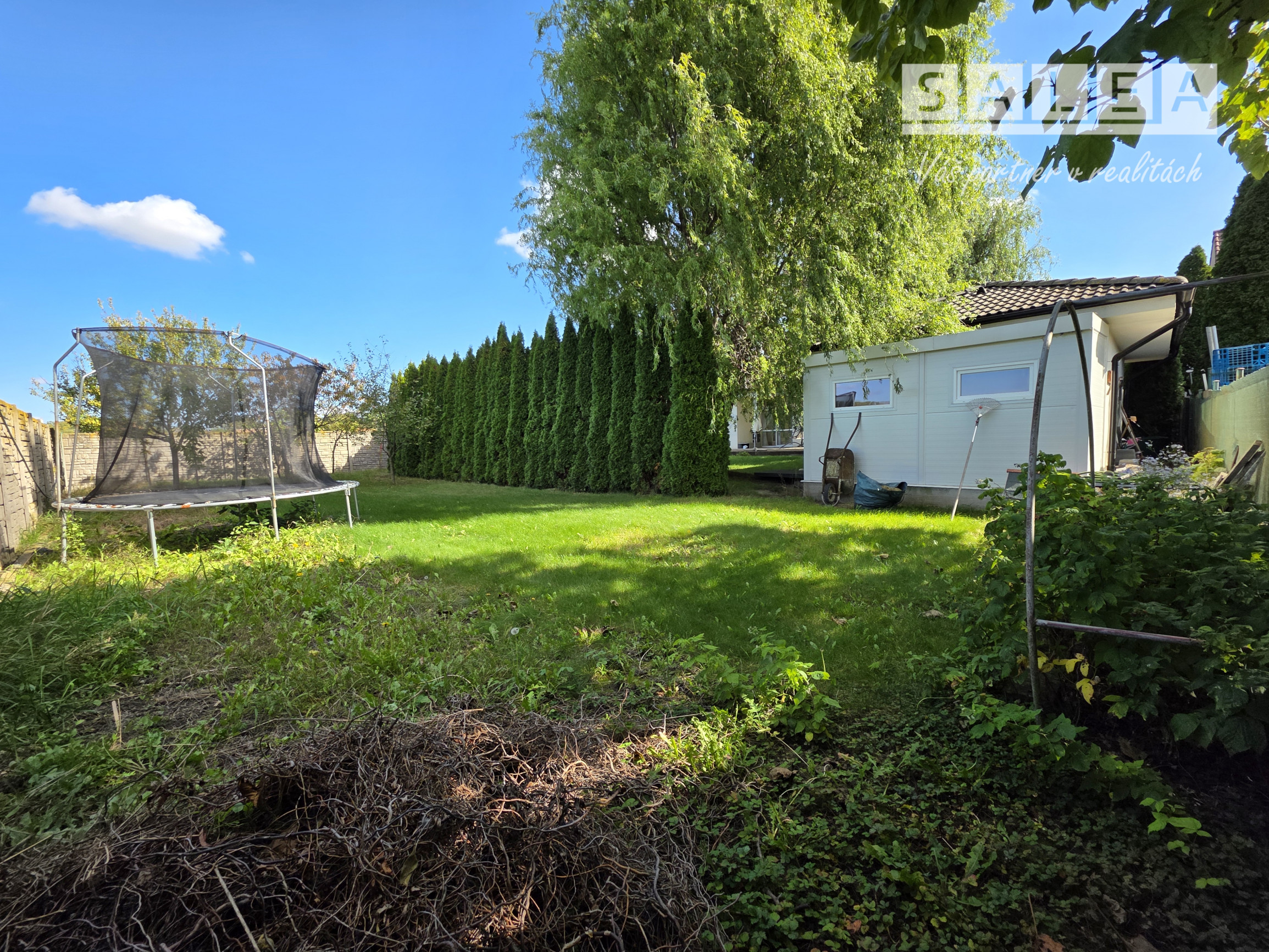 Na pozemku nájdete krásne vrby a založenú záhradu so sadom ovocných stromov, ktorá ponúka pokoj aj súkromie. Dom je ideálne umiestnený v strede pozemku, vďaka čomu vznikla čarovná predzáhradka. K dispozícii je aj studňa, domček na záhradné náradie prepojený s garážou a množstvo zelene.