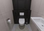 keramická dlažba, obklad, laminátová podlaha, sanita (2x toaleta, vaňa/sprchový kút + batérie), interiérové dvere.