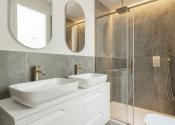 keramická dlažba, obklad, laminátová podlaha, sanita (2x toaleta, vaňa/sprchový kút + batérie), interiérové dvere.