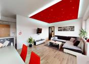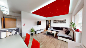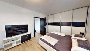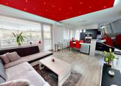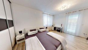 - Kuchynská linka vybavená vstavanými spotrebičmi - indukčná varná doska, digestor, mikrovlnná rúra, elektrická rúra, chladnička s mrazničkou, plávajúca podlaha, plastové okná, interiérové dvere s obložkami, veľká vstavaná skriňa a kumbál v spálni