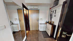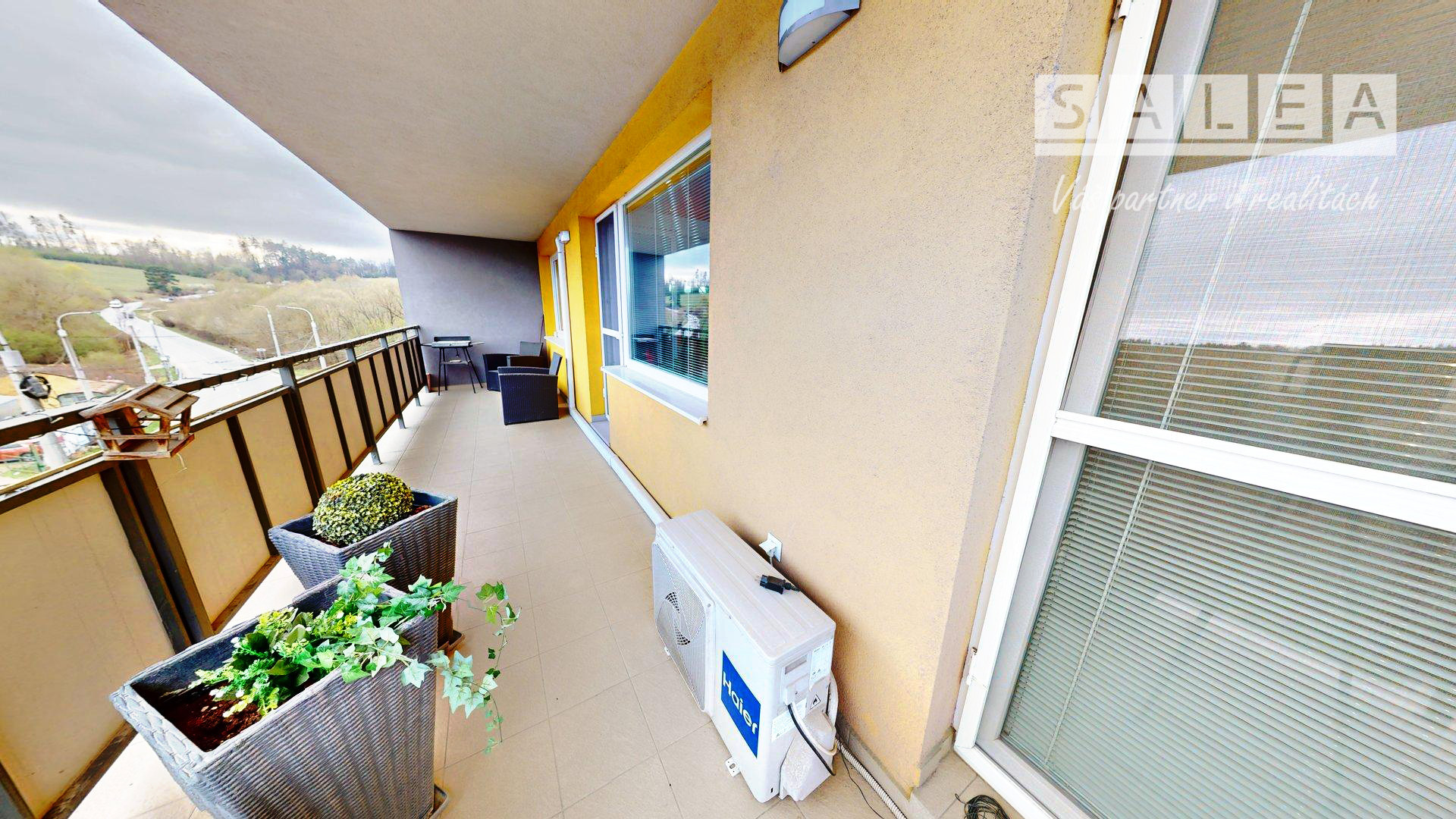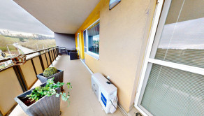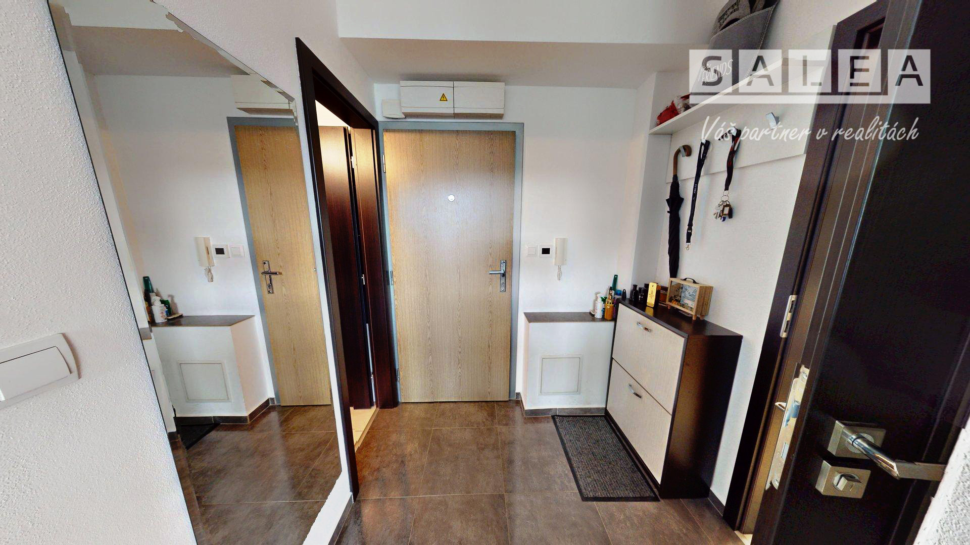 Byt má 57 m² vrátane pivnice (54,60 m² byt + 2,40 m² pivnica) a k tomu veľkú južne orientovanú terasu o výmere 17,6 m², na ktorú sa dostanete z obývacej izby aj zo spálne. To je v praxi veľký rozdiel – terasa sa dá používať ako ďalší „životný priestor“ od jari do jesene. Byt sa predáva kompletne zariadený, s praktickou dispozíciou a nábytkom riešeným na mieru, takže nemusíte nič prerábať a zariaďovať a môžete hneď bývať. Nachádza na 2./5. poschodí. Byt má murované jadro, kúpeľňu s vaňou, samostatné WC, plávajúce podlahy, interiérové dvere s obložkami zárubní a kuchynskú linku so vstavanými spotrebičmi. Plastové okná sú samozrejmosťou. V prípade, ak by Vám bolo cez leto moc teplo, tak to nie je žiaden problém, pretože byt je vybavený klimatizáciou. Dostatok úložného priesoru vám zabezpečí veľká vstavaná skriňa a kumbál v spálni. Parkovacie miesto v blízkosti vchodu je možné dokúpiť za 15.000 Eur. A keď potrebujete pracovať z domu, máte k dispozícii optický internet.