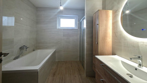 Dom je skolaudovaná novostavba s dôrazom na úsporu energií a komfort. Vďaka tepelnému čerpadlu, podlahovému kúreniu a rekuperácii dosahujú mesačné náklady na elektrinu približne do 40 €, čo z neho robí mimoriadne ekonomické bývanie.