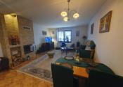 Dispozičné riešenie realizované v premyslenom štýle: vstupná chodba + odkladací priestor, presvetlená priestranná obývačka s murovaným krbom, bezbariérovo prepojená s kuchyňou 2x okno (V a J), nová kuchynská linka + vstavané spotrebiče (sklokeramická varná doska), s bezbariérovým prístupom do 1x spálňa a 1x hosťovská izba. Kúpeľňa spojená s toaletou (sprchový kút + sanita+ okno), schody na poschodie + štýlové zábradlie + vstup do pivničných priestorov.