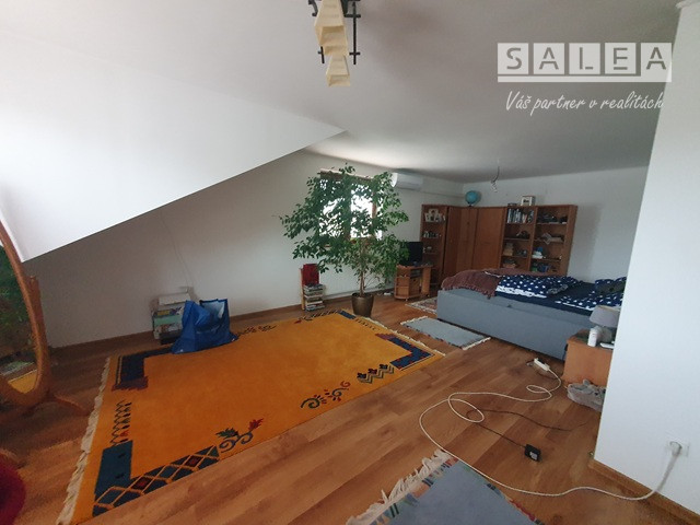 Poschodie: 1x izba + 4x okno (s možnosťou zmeny na dve samostatné, plnohodnotné), kúpeľňa spojená s toaletou (sanita + vaňa), 2x šatník.