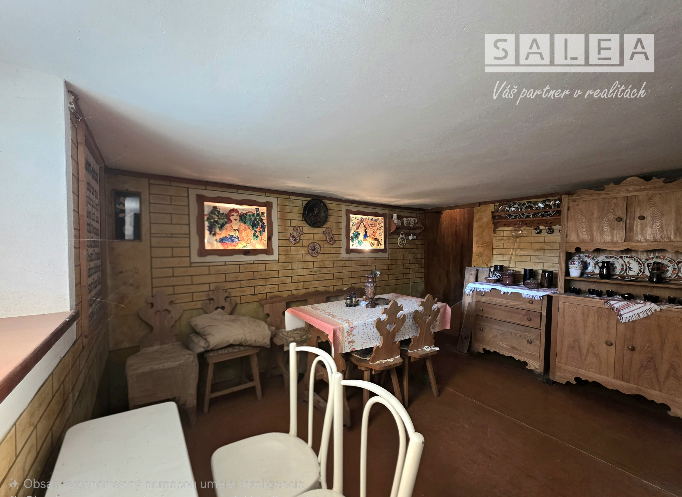 čiastočne podpivničený (slovenská izba + 3 miestnosti – ideálne ako vínna pivnica, úložný priestor alebo dielňa)
