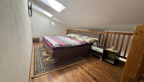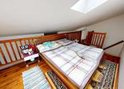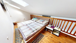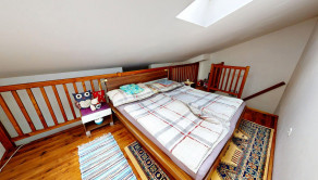 Z obývacej izby vedie schodisko do netradične riešenej spálne v štýle galérie, ktorá dodáva bytu osobitý charakter. Z chodby sa dostanete do ďalšej izby, kúpeľne a samostatnej toalety.
