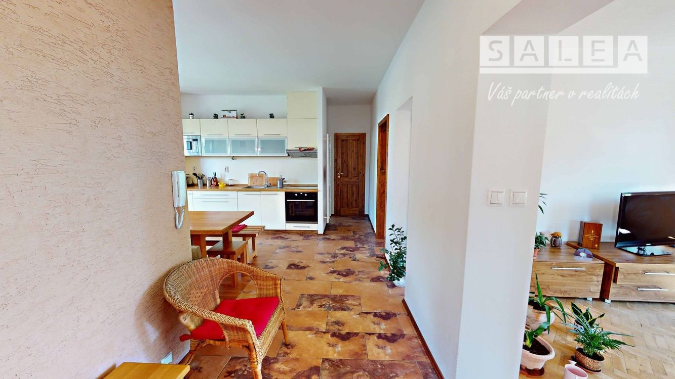 Zo vstupnej chodby ( tu sa nachádza priestor na odkladanie vecí a vstavaná skriňa) sa dostanete do priestorovo veľkorysej kuchyne, ktorá je kompletne a moderne zariadená, z tohto útulného priestoru sa dostanete do kúpeľne, spálne a do štýlovej obývačky ktorú prehreje nielen elektrické kúrenie, ale aj krbová vložka ktorá svojím teplom spríjemní posedenie v tejto miestnosti a teplo sa dostane cez prieduchy aj do ostatných izieb.